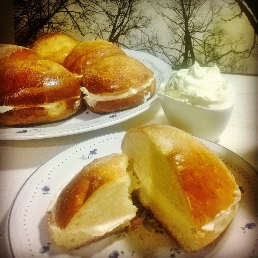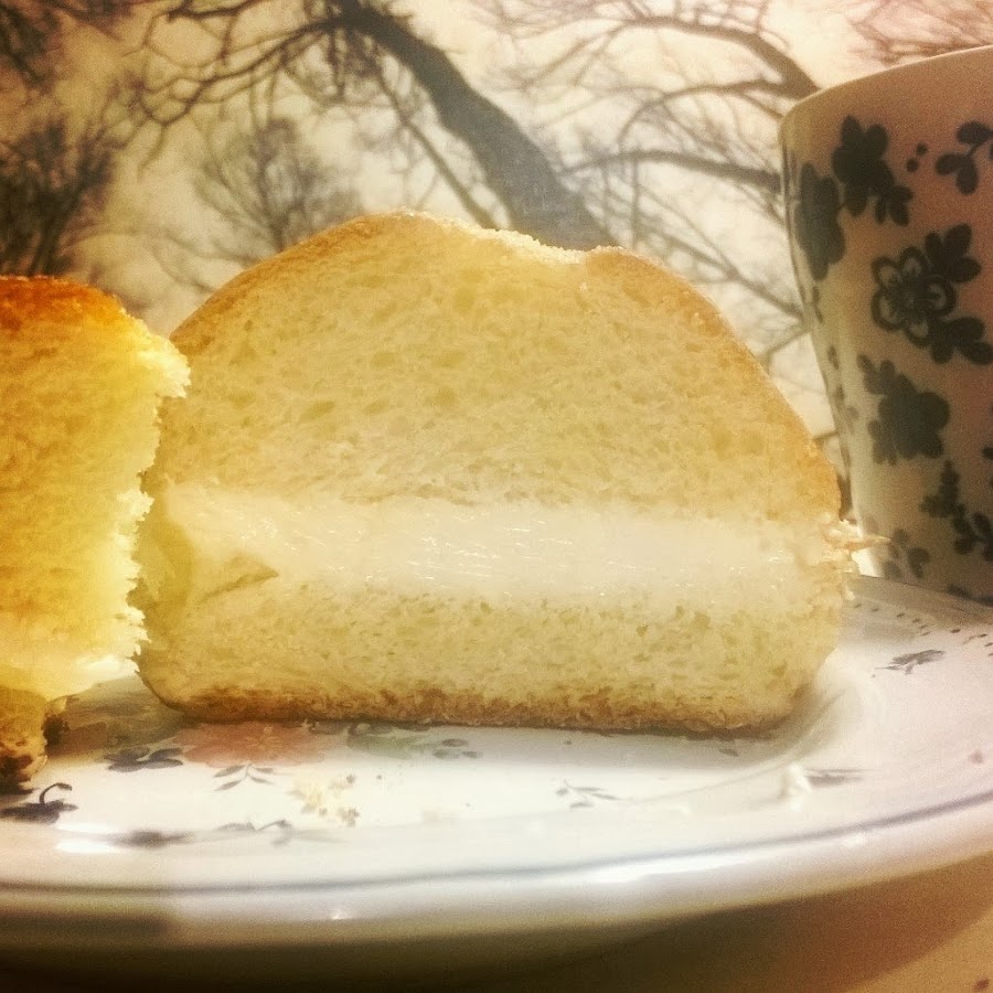 Cortamos los bollos por la mitad y los rellenamos con la crema.