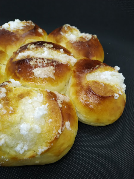 El otro día tocaron unos deliciosos bollos suizos, muy parecidos a unos que yo merendaba cuando era pequeña, con la diferencia de que los que yo merendaba eran con una fina capa de chocolate por encima, el próximo día los haré así.