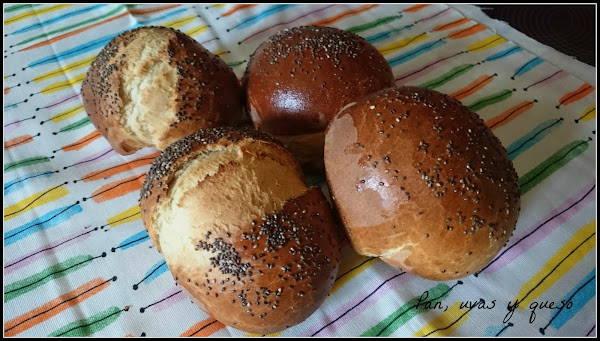 Estos bollos que os traigo hoy eran supuestamente para hamburguesa pero, aunque están muy ricos, no tienen una buena textura para ella. Así que acabamos comiéndolos con pastrami. ¡No hay mal que por bien no venga! La receta está basada en la del libro "Cocina en casa con Martín Berasategui".