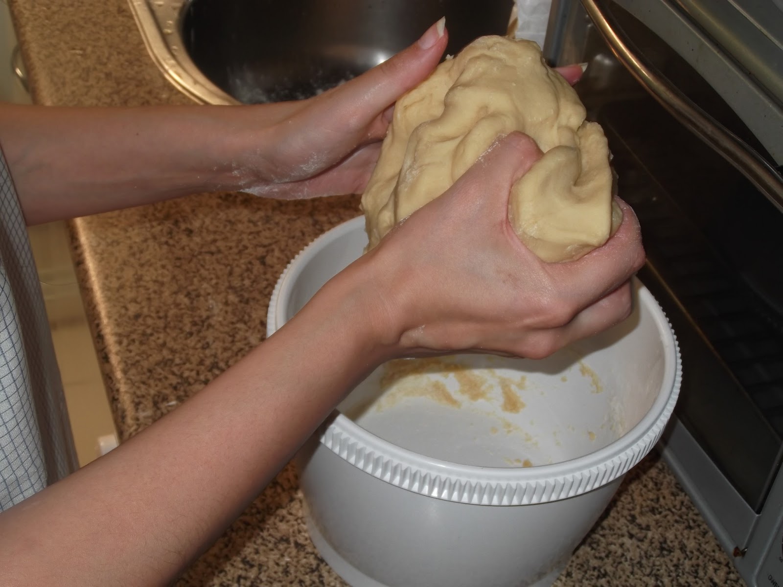 Cuando ya veis que la masa se despega de las paredes del bol y de las manos, la tapáis con un paño y la dejáis que fermente. Yo la tuve una hora, ya que ahora al ser verano tarda menos tiempo, porque la temperatura es más alta, sobre todo en mi casa. No obstante, os daréis cuenta que la masa está lista cuando haya doblado su volumen.