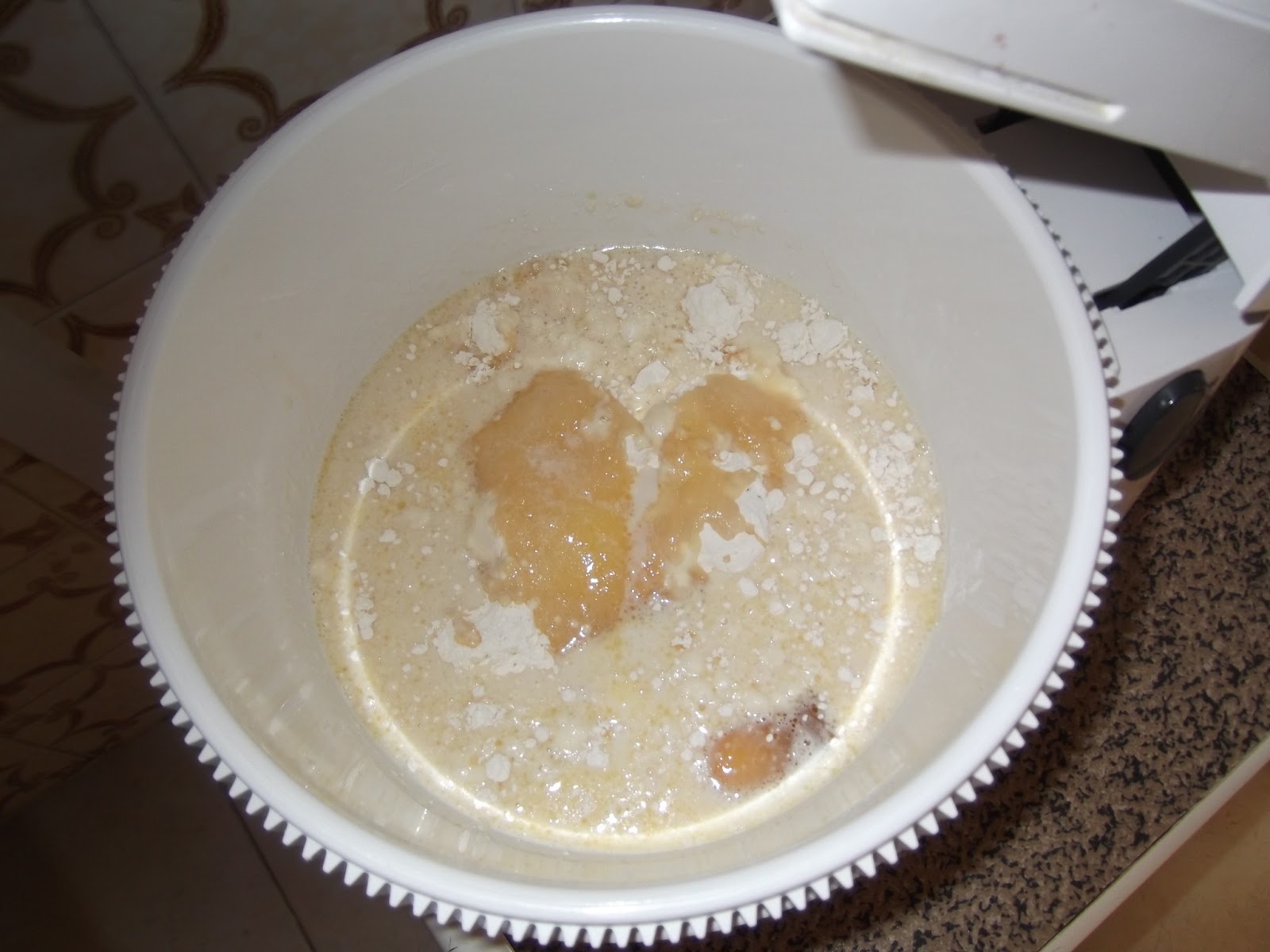 Lo primero que hacemos es elaborar la masa. Comenzamos mezclando todos los ingredientes en un bol para amasarlos, como os he explicado en otras ocasiones, yo tengo una batidora-amasadora, por lo que tardo menos tiempo que si lo hiciera a mano, pero bueno si no tenéis en casa lo único que deberéis tener es un poco más de paciencia.