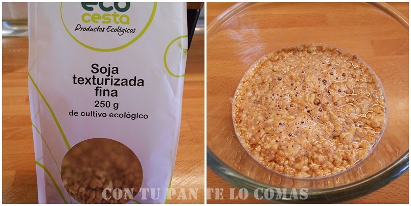Hace un tiempo Nuria Eme me descubrió la soja texturizada en su blog El cuaderno de recetas , un blog precioso, uno de mis favoritos sin duda por que ella es un encanto y por lo bien que lo explica todo, hasta las cosas raras (como ésta lo era para mí) y además si te interesan las masas y los panes, es tu blog!!