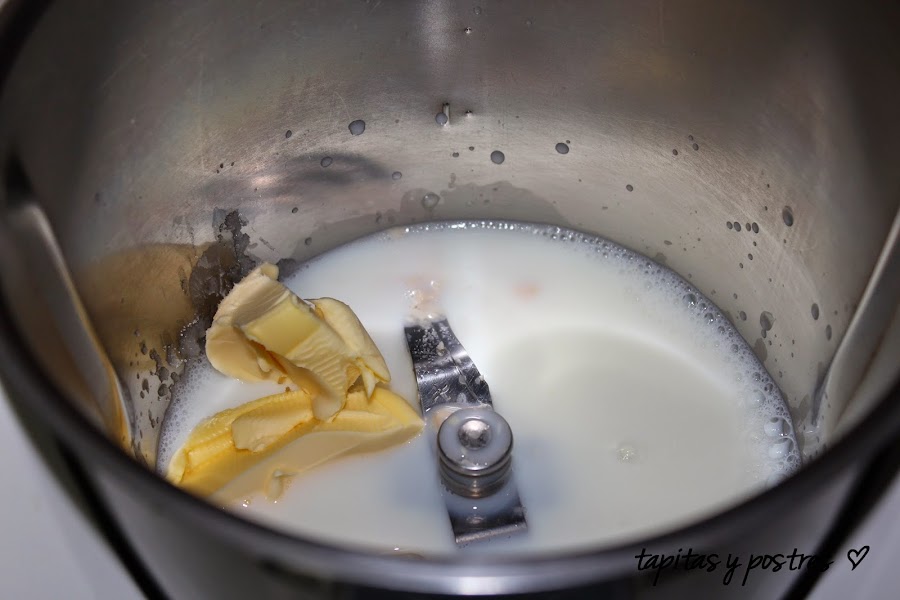 Mientras preparamos la crema pastelera. Ponemos todos los ingredientes menos el cacao, y programamos 7 minutos, 90º, velocidad cuatro.
