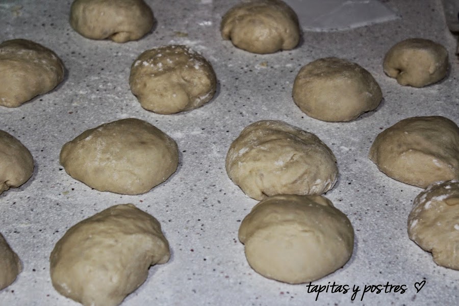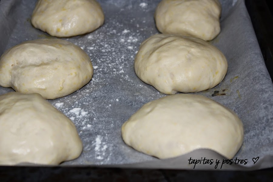 Las ponemos separadas entre sí en una bandeja de horno y dejamos que reposen otra vez. Una hora y media más o menos.