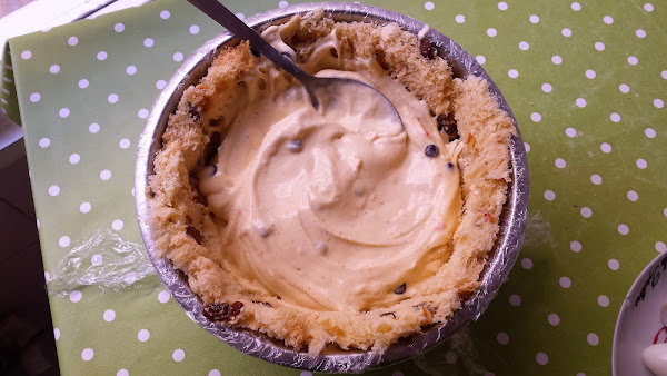 Utilizamos esta mezcla para rellenar la bomba de panetone