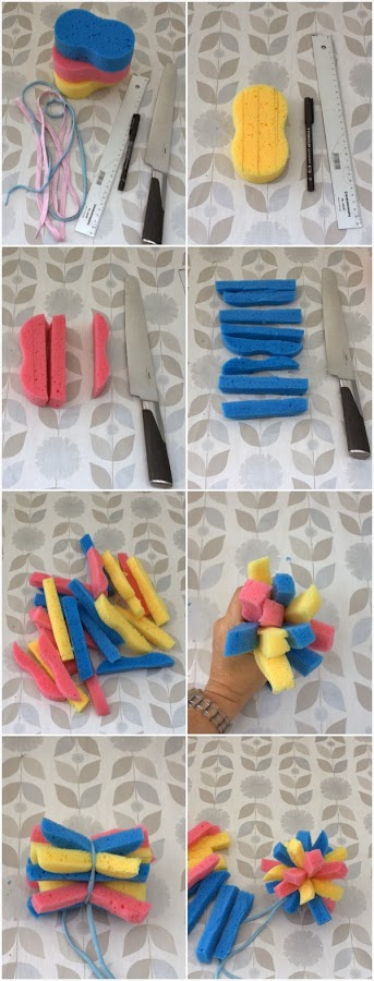 Dividir las esponjas en 4 partes y márcalas con el rotulador.