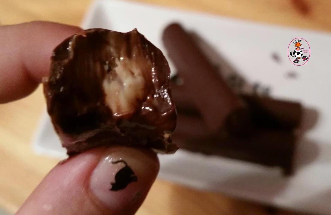 Troceamos el chocolate, lo ponemos en un bol y metemos al microondas hasta que esté derretido. Sacamos y con la ayuda de una cuchara vamos removiendo hasta que el chocolate esté totalmente derretido. En un molde para bombones,el mio es alargado y de silicona rellenamos con chocolate, le damos la vuelta al molde (encima de un plato) y dejamos que caiga el chocolate, de esta manera solo nos quedará la base del bombón y los laterales. Metemos a la nevera y dejamos unos 10min. Sacamos y rellenamos con nocilla,cubrimos con el resto de chocolate, pasamos una espátula para dejar liso la base de los bombones y guardamos en la nevera un ratito, hasta que veamos que esta durito el chocolate. Sacamos,desmoldamos y a comer.