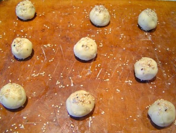 Pintamos con huevo, añadimos semillas de sésamo y horneamos a