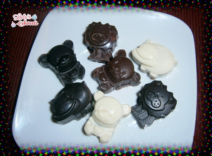 - 500 gr. de chocolate de cobertura (podéis utilizar el que más os guste, yo he utilizado de tres tipos: con leche, blanco y negro).
