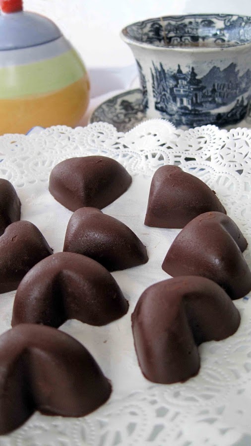 Y que casualidad que mi hija me pidió unos bombones para regalárselos al novio el día de San Valentín.Claro estos ya no porque se los han comido todos,parece que les ha gustado. No había dicho lo que llevaba dentro hasta que no lo han probado, se nota un toque crujiente y un contraste muy bueno.