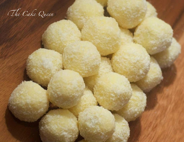 6. Se reboza cada uno de los bombones con coco rallado y se vuelven a llevar a la nevera, estarán listos pasadas unas 3 ó 4 horas.