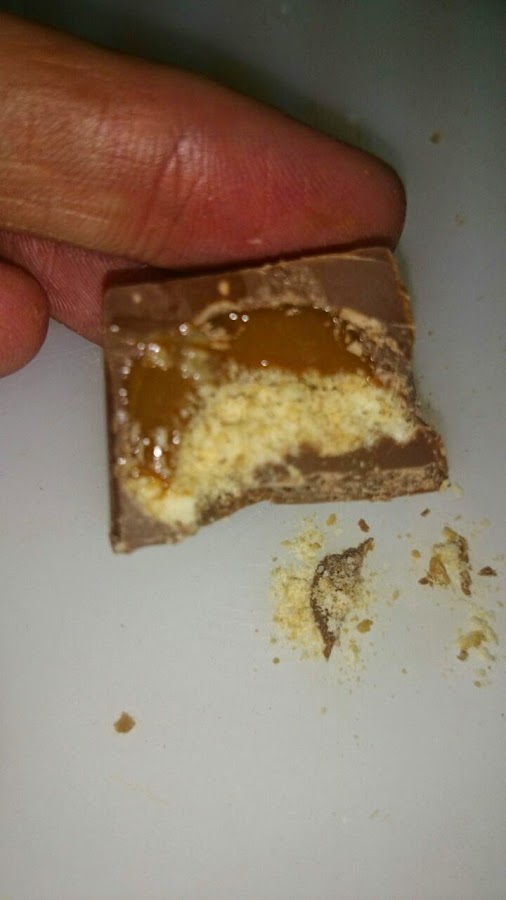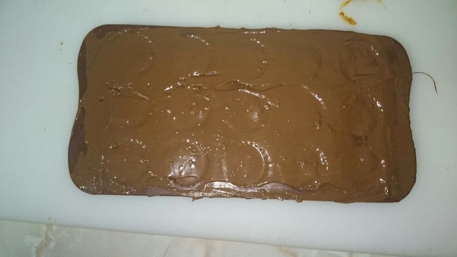 Como se ve en la foto de abajo, dejamos un poco de sitio para tapar el relleno con el resto de chocolate.