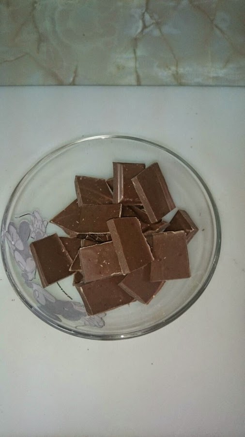 Lo primero que haremos será trocear el chocolate en un bol que se pueda meter al microondas.