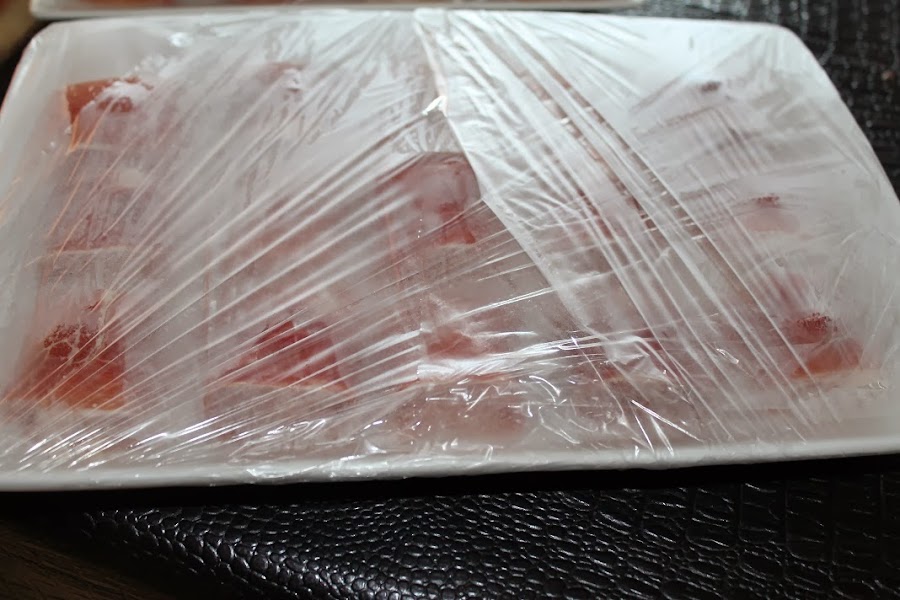 Vamos colocando los bombones en una bandeja, envolvemos con papel film y congelamos mínimo una noche.