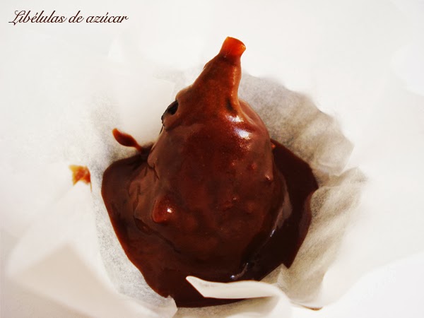 5. Derretimos la tableta de fondant y bañamos los higos rellenos en ella.