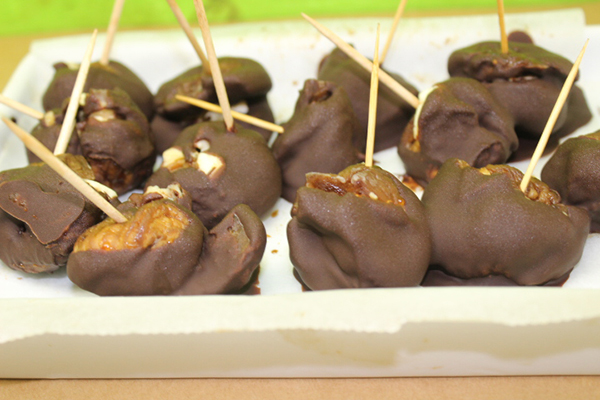 Cuando el chocolate se derrita, con la ayuda de un palillo vamos sumergiendo los higos en el chocolate y los dejamos reposar en una bandeja a la cual le habremos colocado un papel de hornear para que no se nos pegue el chocolate a la bandeja.