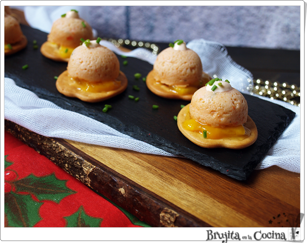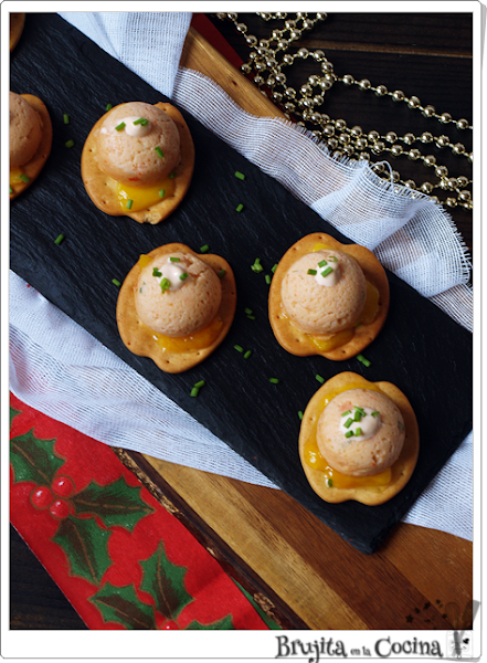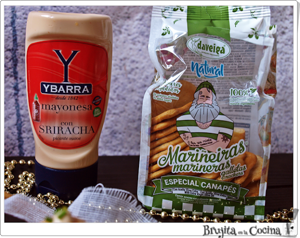 Según mi hija son campanas, será por el copete de mayonesa y que como la base que he puesto unas galletas marineras de Daveiga tamaño canapé, porque estas galletas lo aguantan todo sin perder su textura ni sabor, siempre tengo en casa aunque esta versión canapé no la conocía, ambos productos entraron en la caja de diciembre especial navidad de Degustabox, y la verdad es que nos ha resuelto algunas comidas.