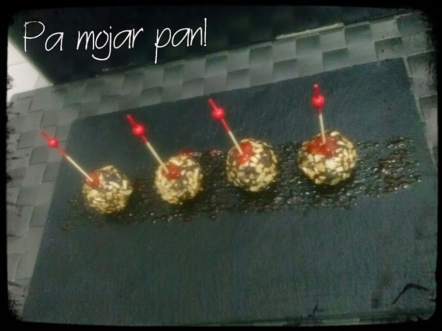 Emplatamos disponiendo sobre las bolitas una puntita de mermelada de pimientos.