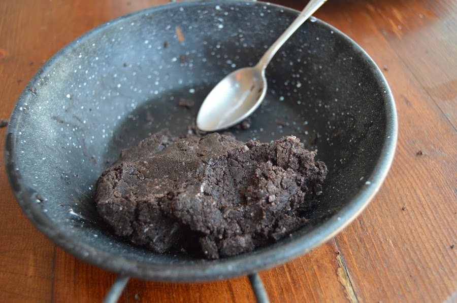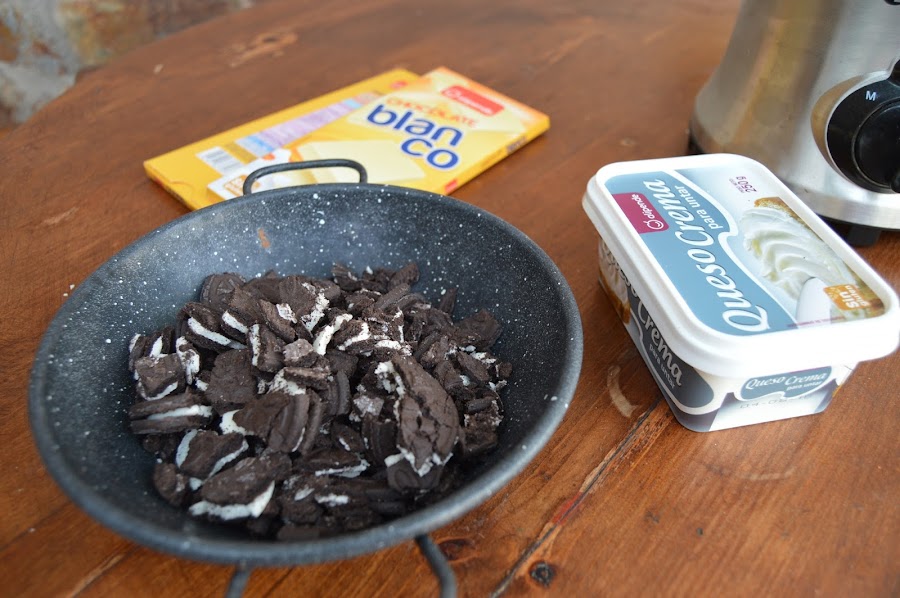 A las galletas trituradas le vamos añadiendo queso crema hasta obtener una bola que se pueda moldear.