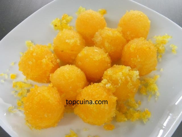Hacer bolitas, rebozar con polenta, pasar por huevo y otra vez por polenta.