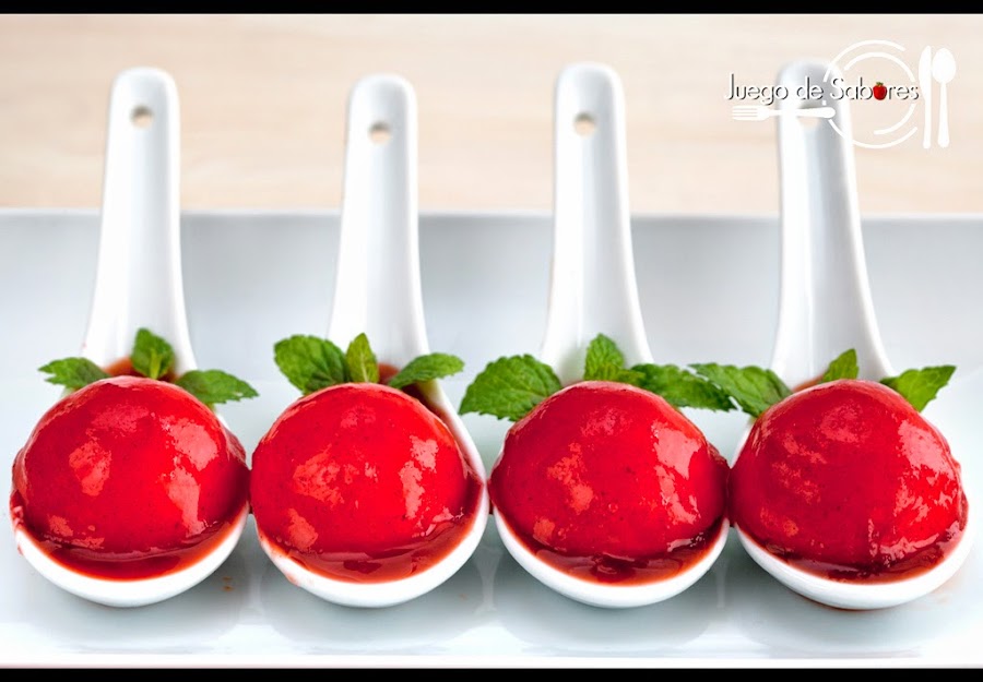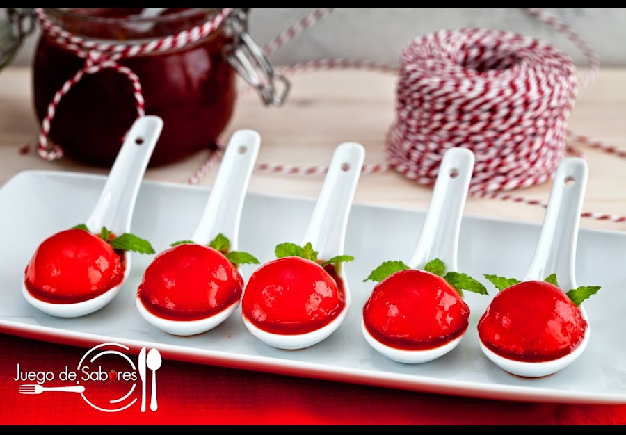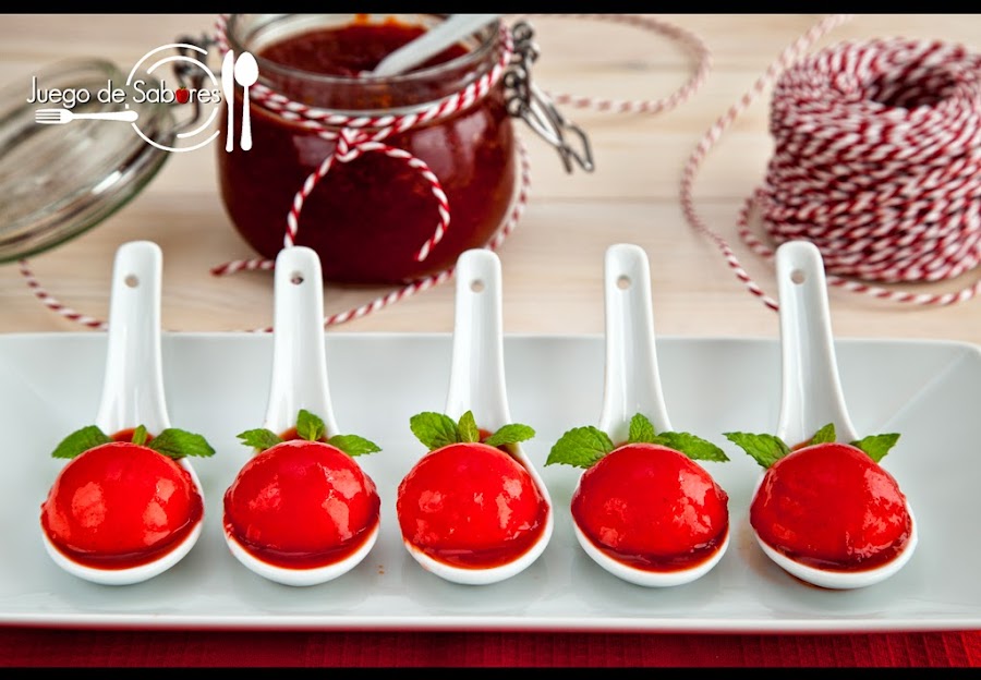 Servir sobre una cuchara con un poco de mermelada de pimiento y encima el bombón de queso.
