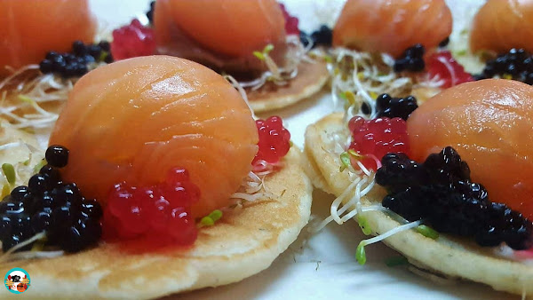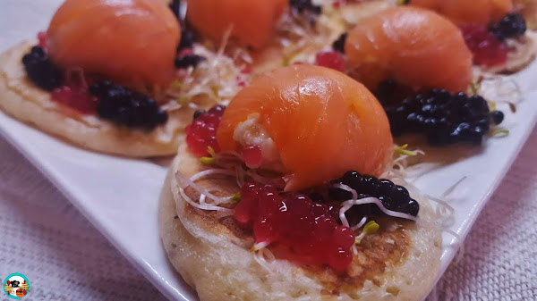 1.- Preparamos los blinis: (Ver receta) Los puedes hacer sin la cebolla o con ella.