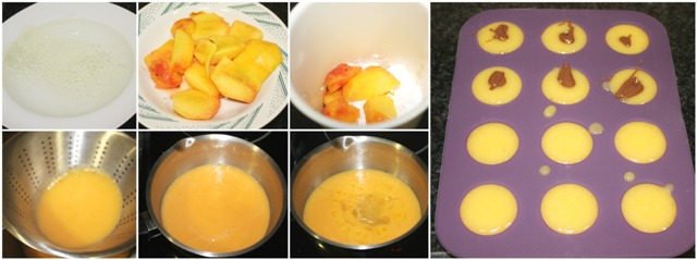 Haremos un coulís con el melocotón y el azúcar (el coulís siempre lleva el triple de peso de fruta que de azúcar), es tan sencillo como triturar la fruta junto con el azúcar. Una vez triturado lo pasaremos por el colador chino.