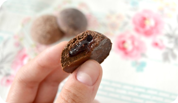 Por ultimo, con mas chocolate derretido, cubrimos todos los bombones para asi taparlos y dejar dentro la mermelada y volvemos a llevar a la nevera. En esta ocasion mejor dejarlo de un dia para otro pero si no puede ser con una hora sera suficiente.