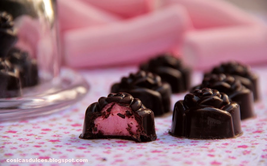 Transcurridos unos 10 minutos las nubes se habrán puesto duritas. En ese momento volvemos a calentar el chocolate y cubrimos con el los bombones, retirando el exceso con ayuda de una espátula.