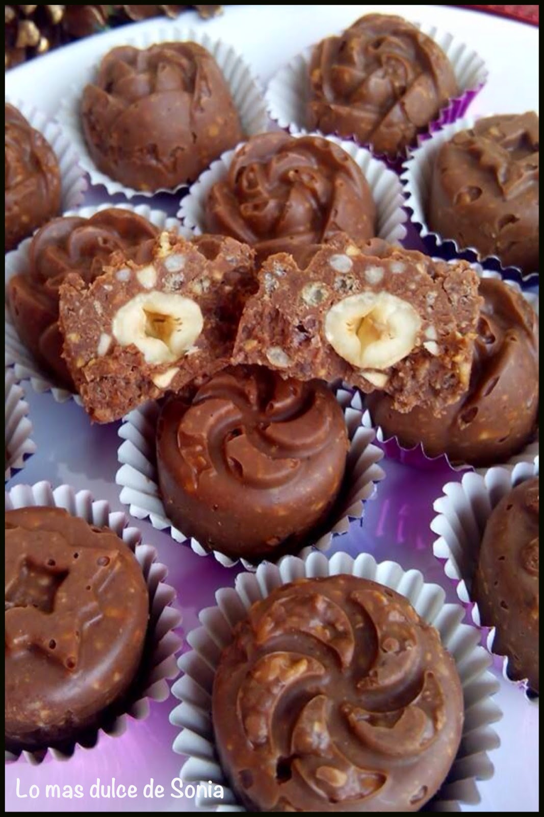 50 gr de avellanas tostadas mas las que pondremos dentro de cada bombón