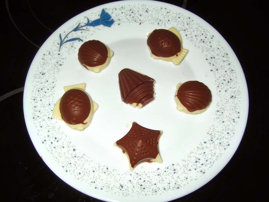 Lo primero que hacemos es derretir el chocolate que queráis utilizar primero, rellenáis el molde hasta la mitad o un tercio, en función de los chocolates que vayáis a emplear. Lo metéis a la nevera durante 15 o 20 minutos, tenéis que tocar y ver que está duro antes de echar el siguiente chocolate encima.