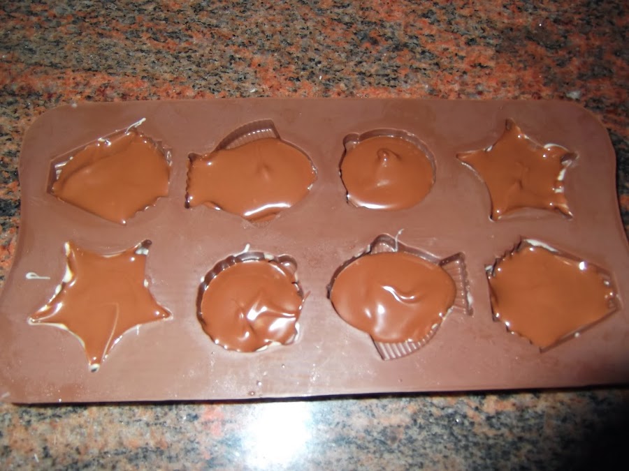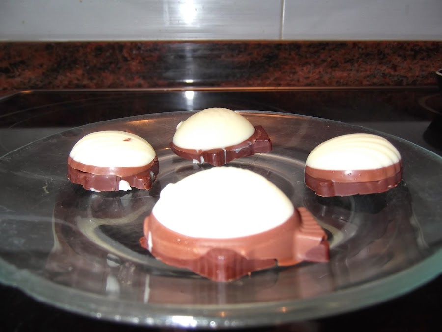 Cuando habéis comprobado que está duro, echáis el siguiente chocolate derretido encima y otra vez a la nevera. Podéis derretirlos al baño maría o al microondas, si utilizáis este último método tened mucho cuidado de que no se os queme, sobre todo el chocolate blanco que es el más delicado.