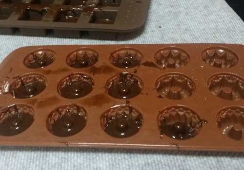 Bombón tipo 3: Poner chocolate con leche en la base y en las paredes de los moldes.