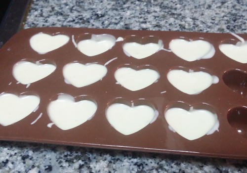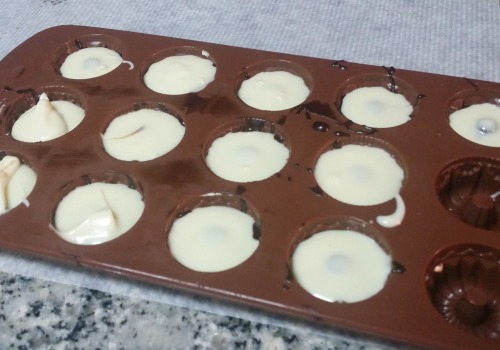 Enfriar. Terminas de rellenar con el resto de chocolate blanco y enfriar.