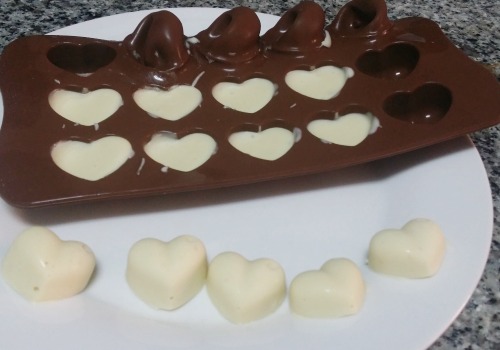 El chocolate blanco es mejor derretirlo al baño maría porque se queda en seguida y se te pasas unos segundos en el microondas, te tocará tirarlo. Por cierto, mucho cuidado con el agua del baño maría porque si salta una gota fastidiarás el chocolate.