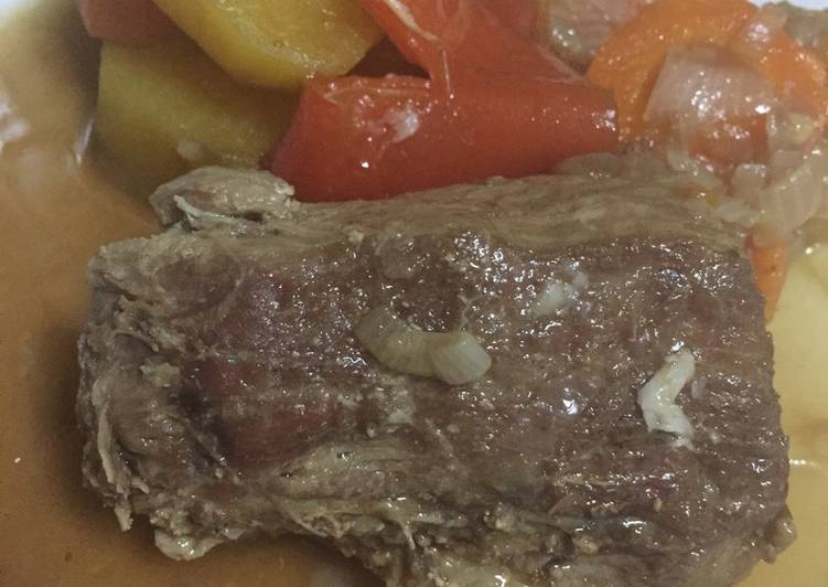 En el momento que ya están tiernos volves a poner la bondiola y el caldo, lo cocinas a fuego bajo