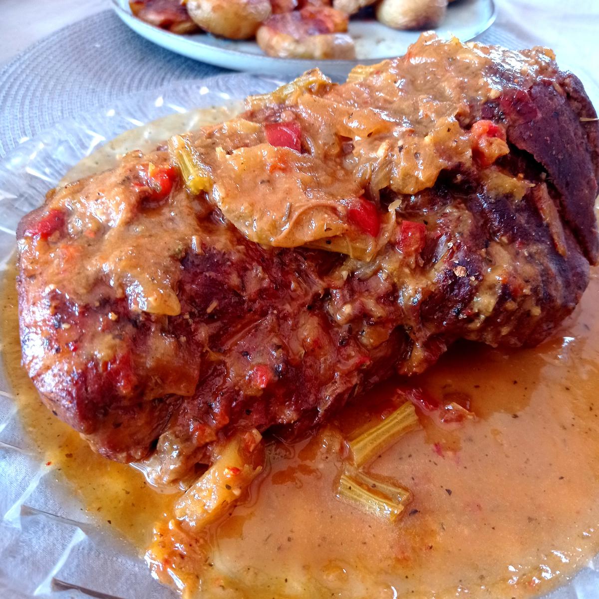 Servir la bondiola junto con la salsa