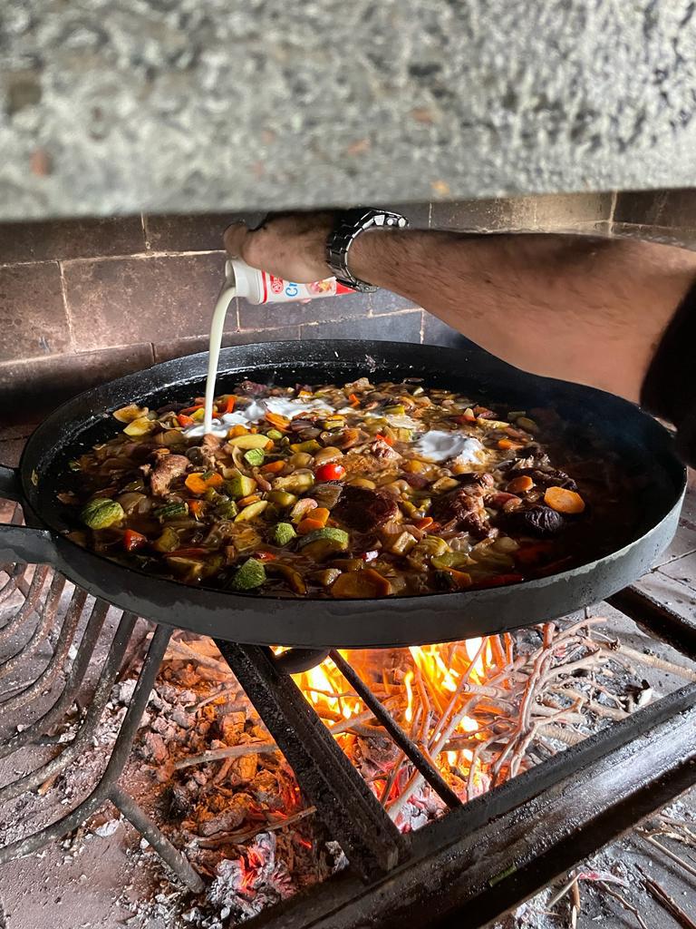 Primero se debe poner a calentar bien el disco sobre la flama abierta y poco a poco añadir los demás ingredientes.