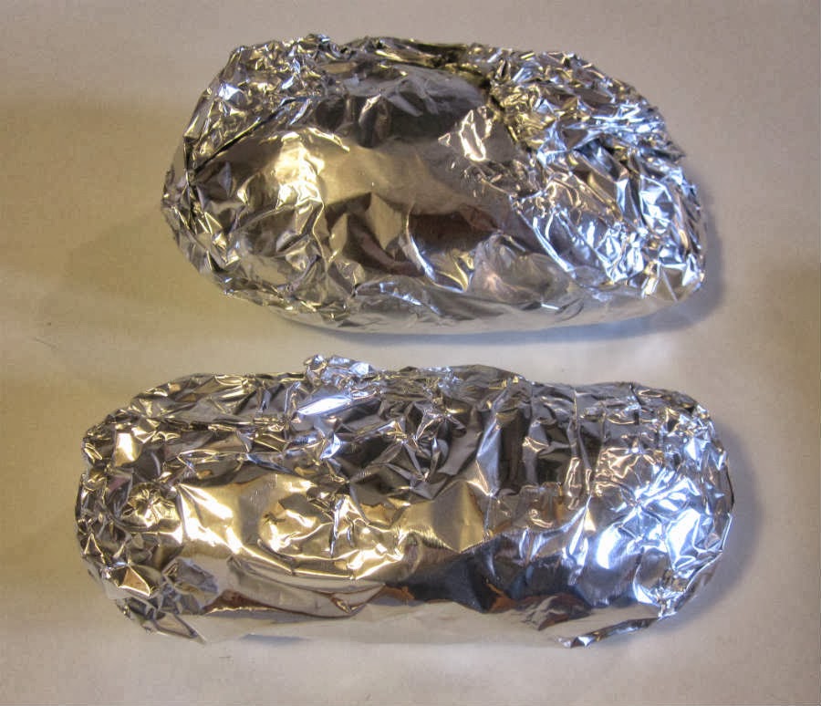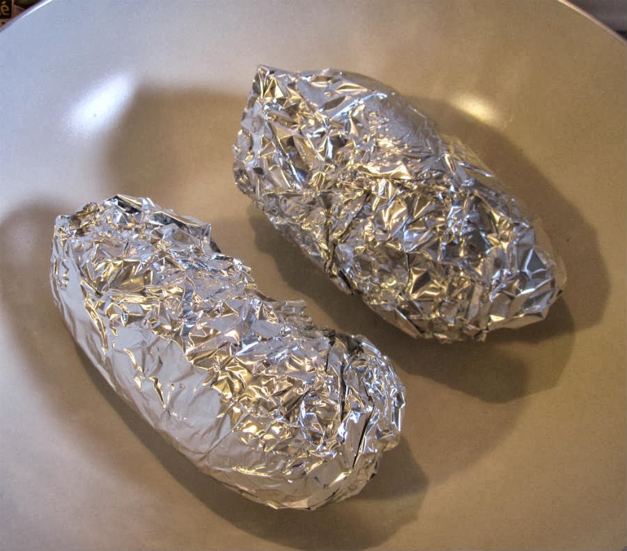 5. Por último, sácalos, déjalos enfriar un poco (no es necesario quitarles el papel de aluminio) y cuando todavía estén bien calentitos, abre el paquetito, córtalo por la mitad y con una cucharita disfruta de este dulce tan rico.