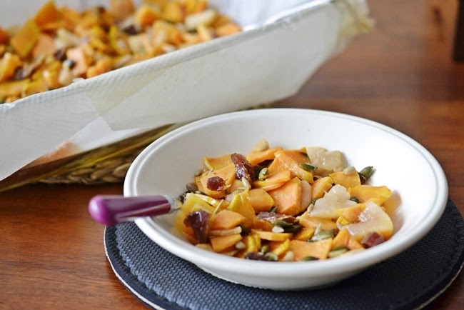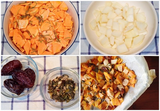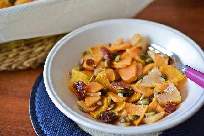 Boniatos al horno con pera y dátiles