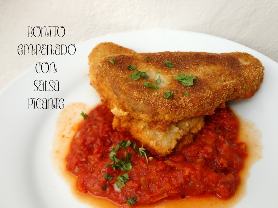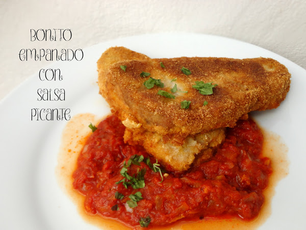 Y para retomar la faena unos deliciosos filetes de bonito empanados con una salsa picante que está de muerte, con bonito o sola con pan... Fácil, rápida y con un saborazo espectacular!