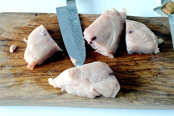 Limpiamos en bonito, eliminando la piel y la espina central.