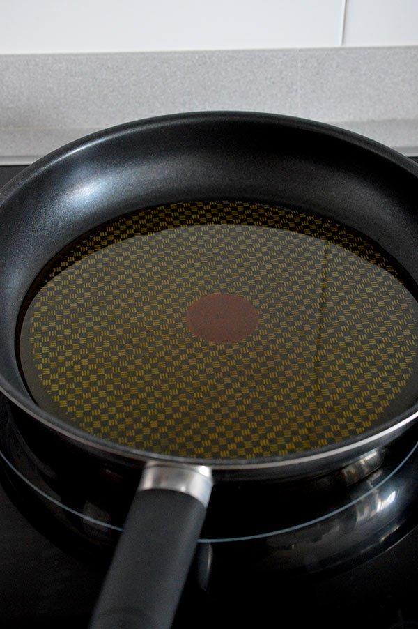 En una sartén grande ponemos a calentar un buen chorro de aceite de oliva virgen extra a fuego medio.