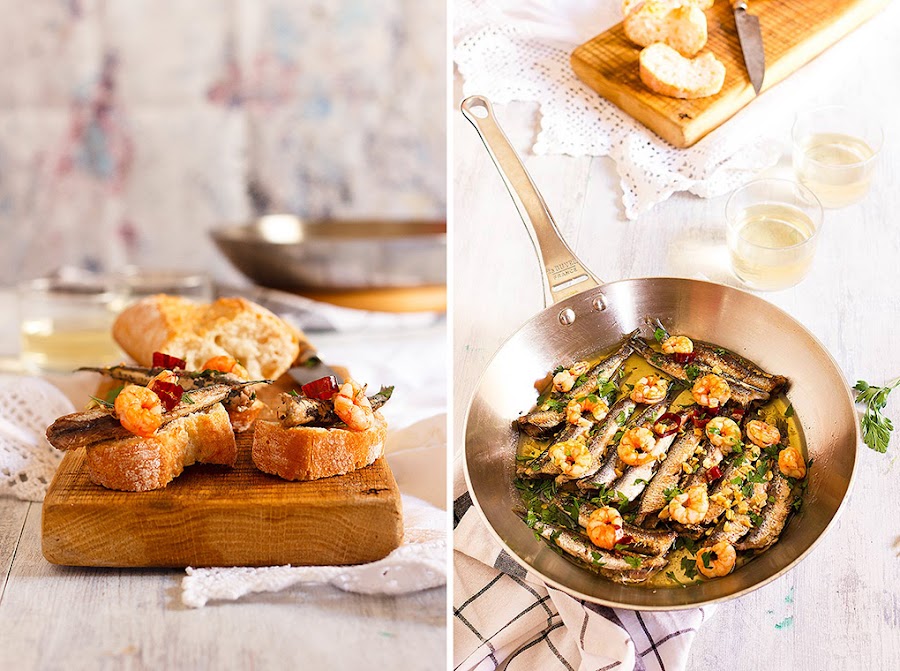 Por éstas razones, os animo a consumir pescado azul, entre los cuales no pueden faltar los boquerones, deliciosos de cualquier manera, admiten ser presentados tanto como plato principal como en ésta ocasión de entrante o tapa con una tosta de pan y un buen vinito blanco bien fresco.Si queréis la receta tan solo tenéis que pinchar AQUI y la encontraréis en el blog de Claudia&Julia.