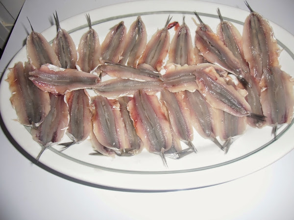 SalLavamos bien los boquerones y los abrimos quitándole la cabeza y la espina central.