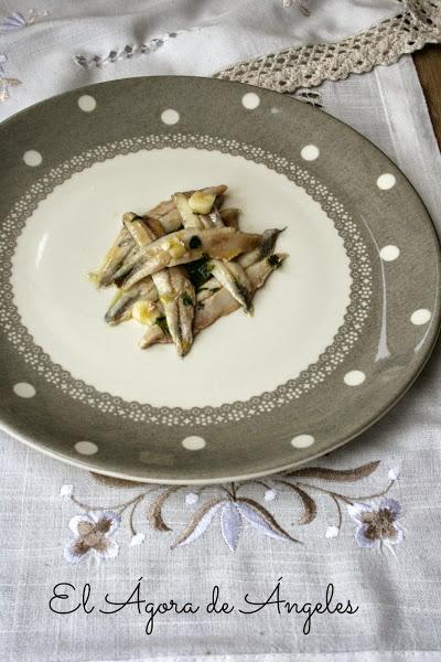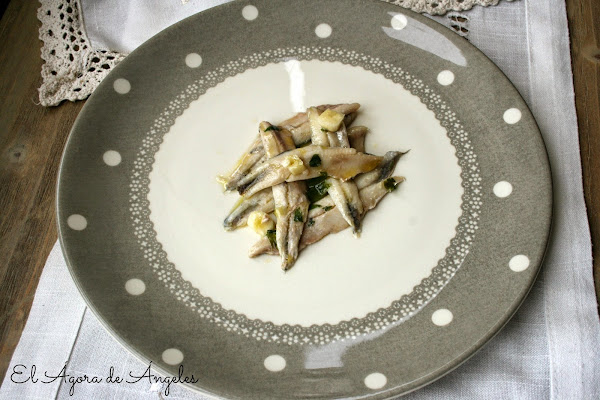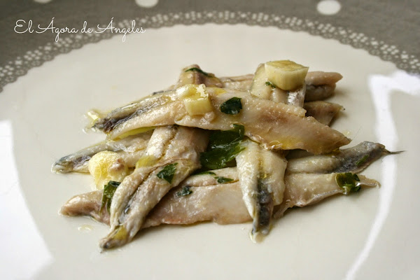 Los bocartes-boquerones quedaron , de verdad, perfectos:eso sí, como bien debe de ser,el pescado ha de estar muy fresco para que aguante la "cocción" del vinagre y siga terso.