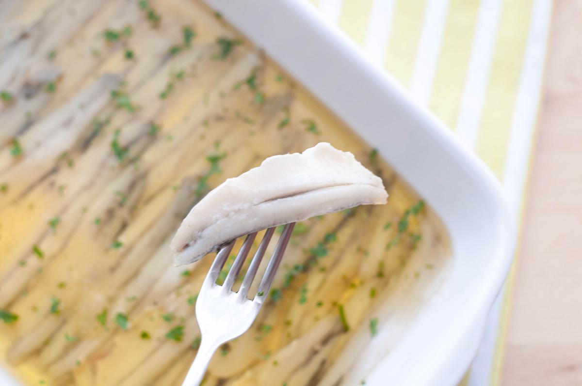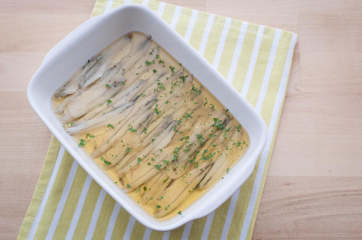 4.- Si estamos preocupados por el tema del anisakis, este sería uno de los momentos en los que podemos congelar el pescado, una vez limpio y preparado. Otra opción sería congelar los boquerones ya marinados, en el final del proceso.
