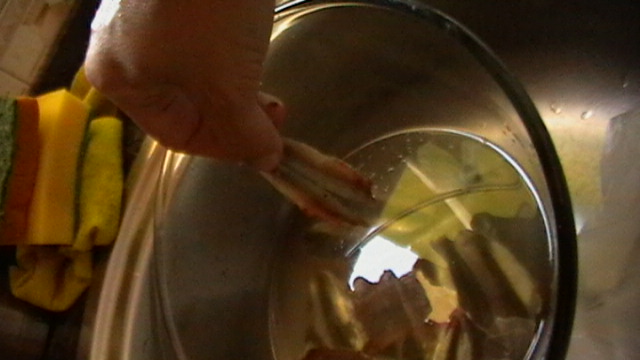 los vamos poniendo en un cuenco con agua limpia del grifo.....