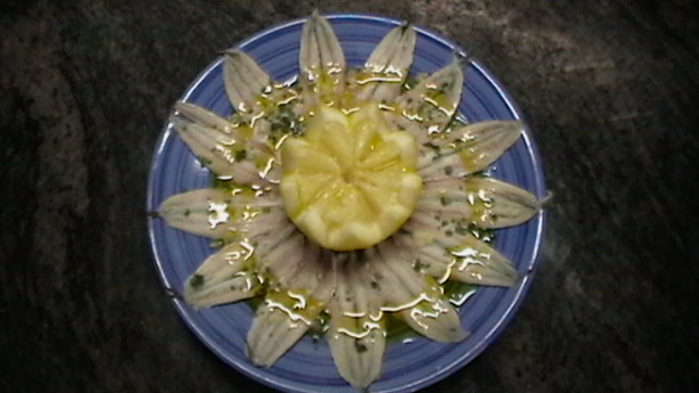 Pasado el día como minimo, los sacamos del congelador y a la nevera, que se descongelen poco a poco..... cuando ya esten descongelados.... le añadiremos, más de medio vaso, de los de agua, de vinagre, sal y el zumo de medio limón, rellenaremos el vaso con agua.... se lo añadiremos a los boquerones, moviendolos un poco para que les entre bien el liquido a todos..... al día siguiente, los escurrimos, los ponemos en un plato, le añadimos ajito y perejil picaditos, y un buen chorrito de aceite de oliva........ y aqui tenemos un aperitivo delicioso.......... o un segundo plato sin apenas calorias............ jajajajjaja buen provecho