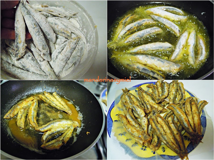 Pasado ese tiempo escurre bien y pasa por harina cada boquerón.